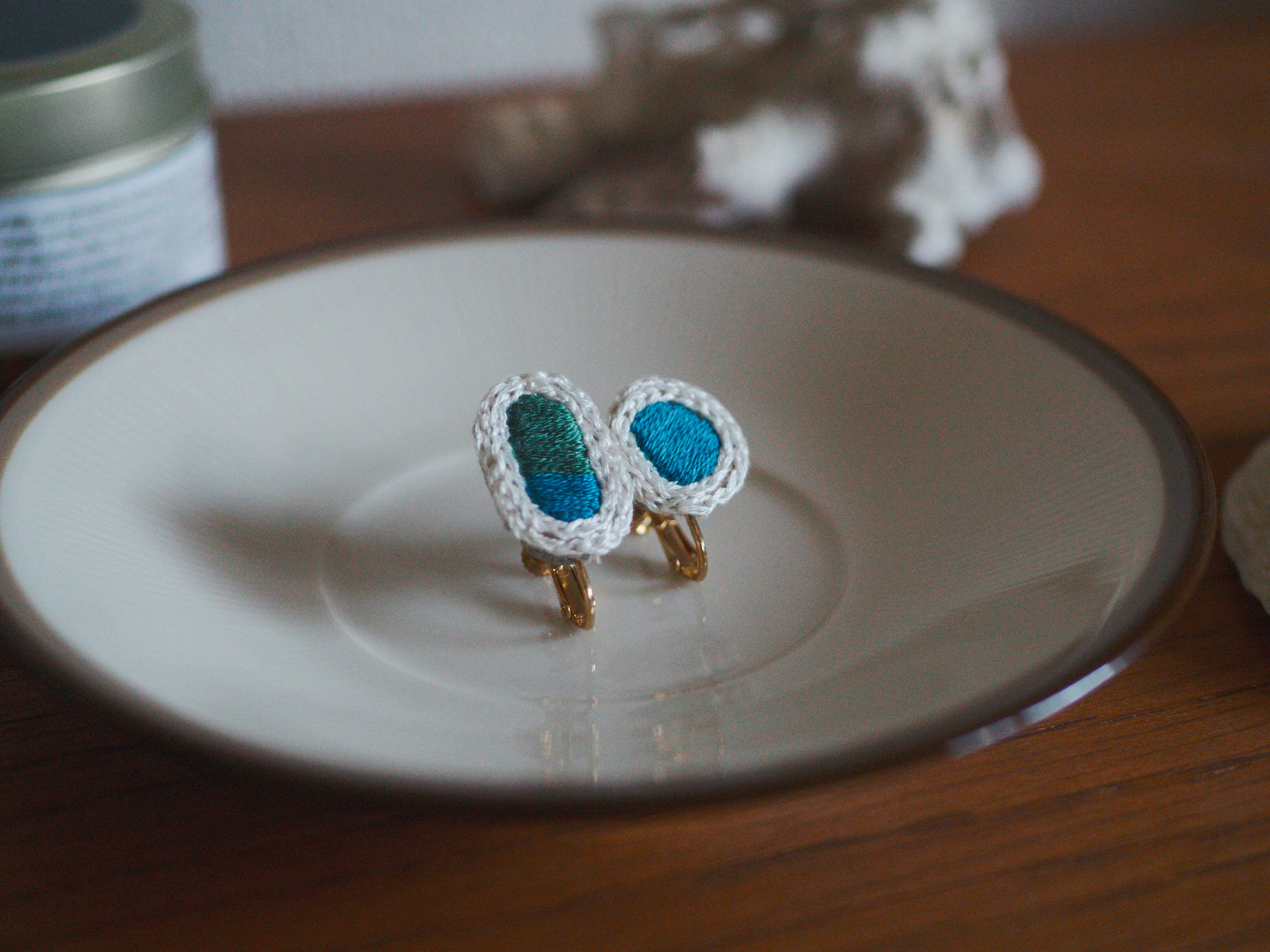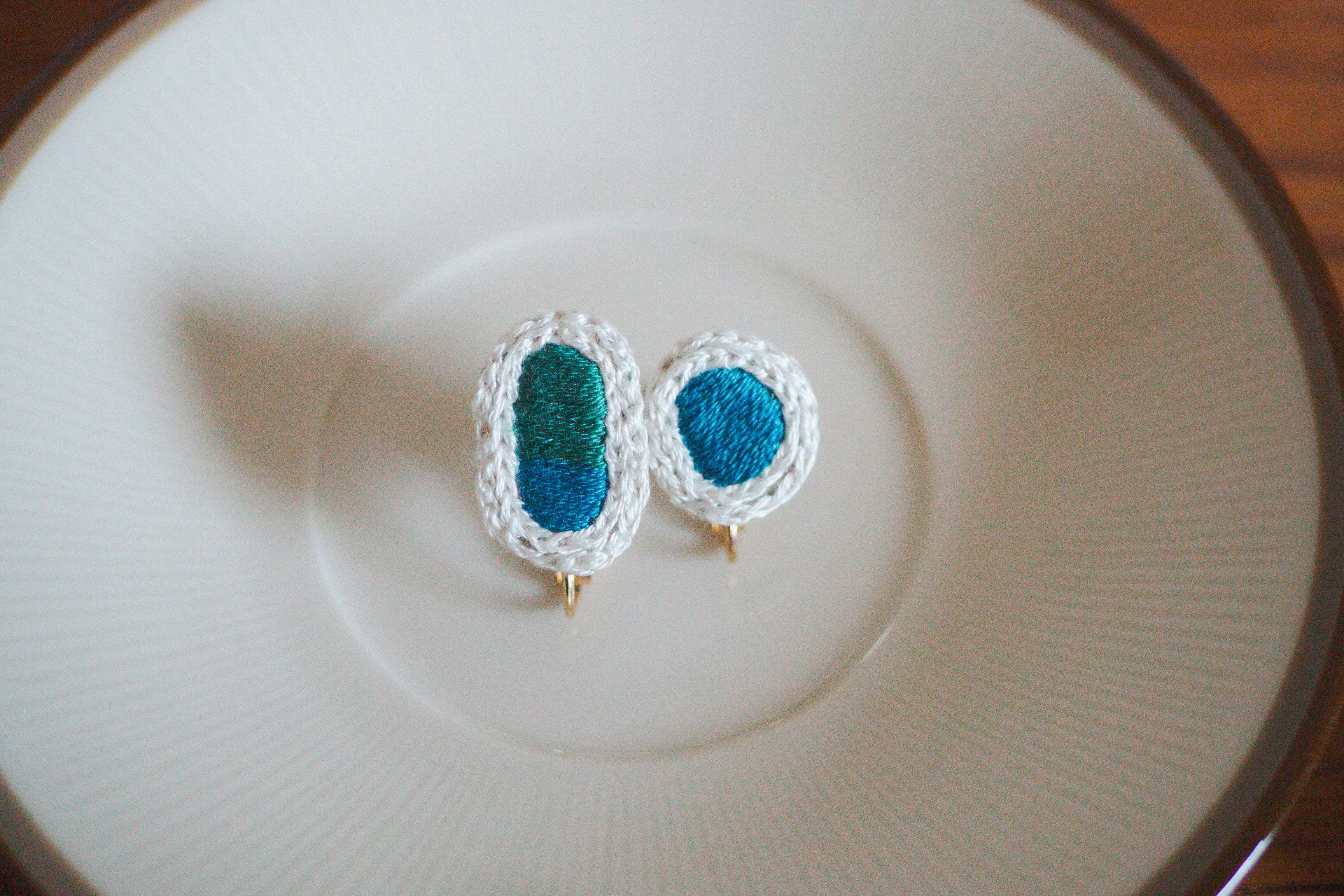 ・アクセサリーを作る工程で糊付けをしています。そのため水に弱い特徴がありますので水濡れにご注意ください。もし濡れた場合はタオルで挟むようにして水分を取ってから乾かしてください。