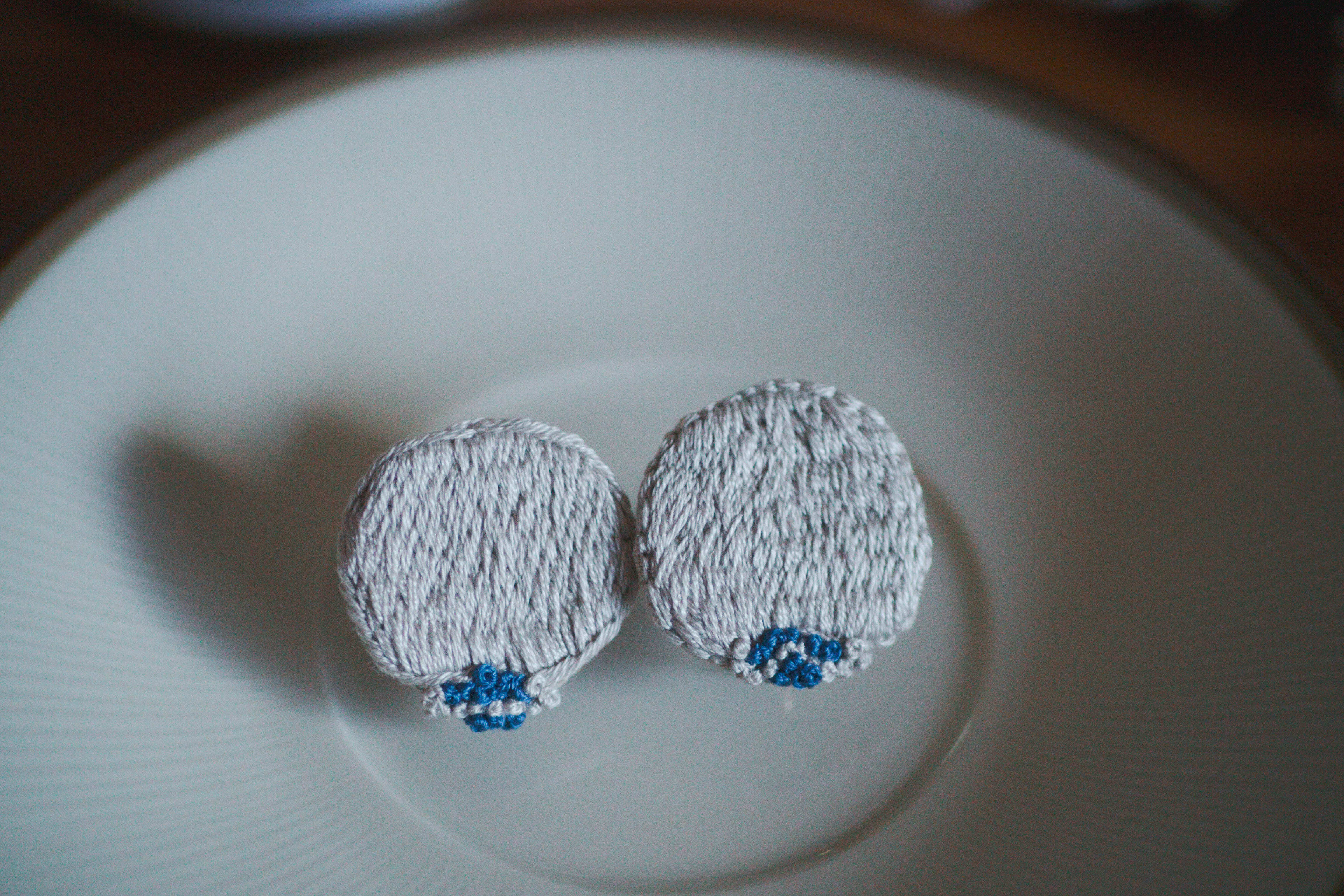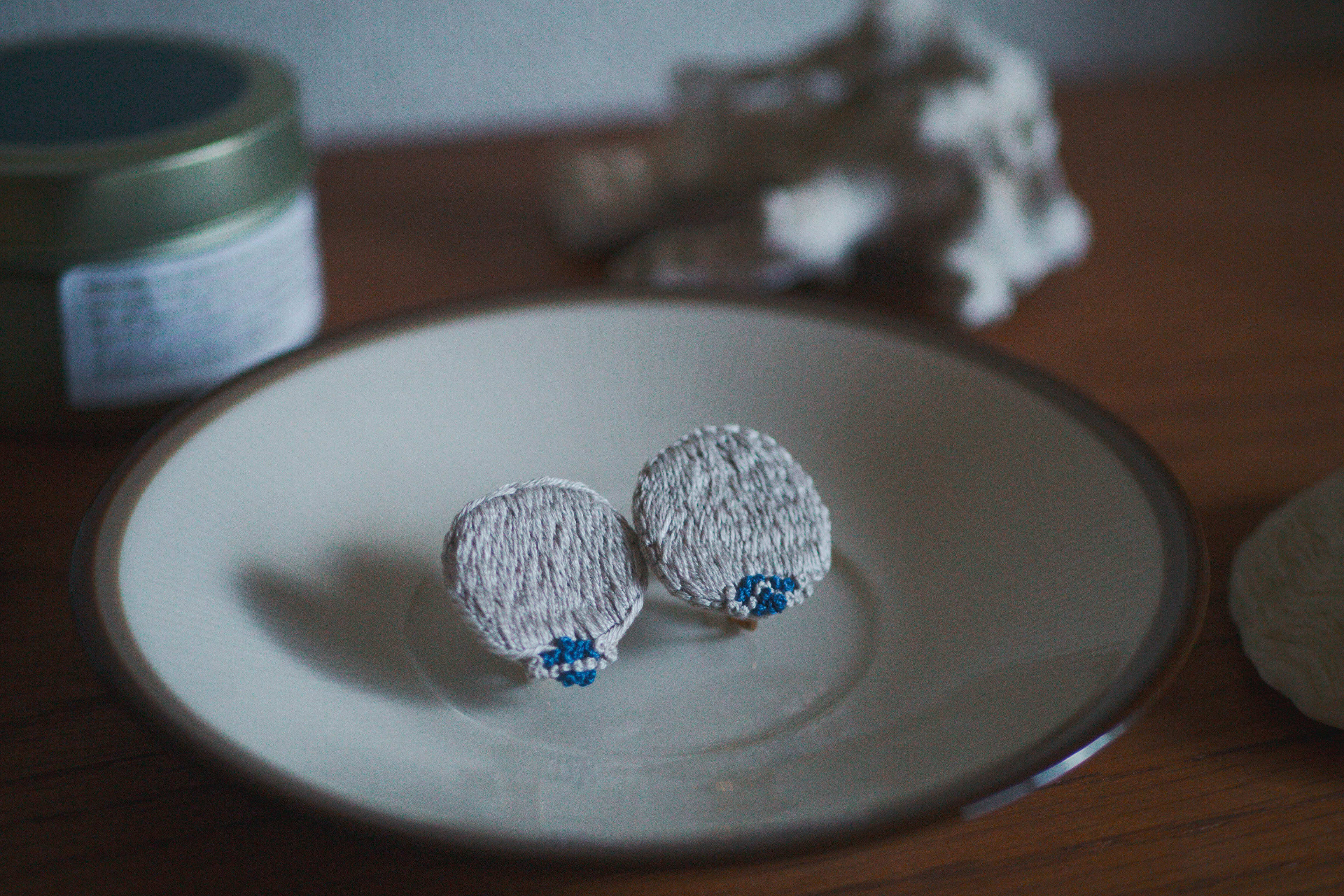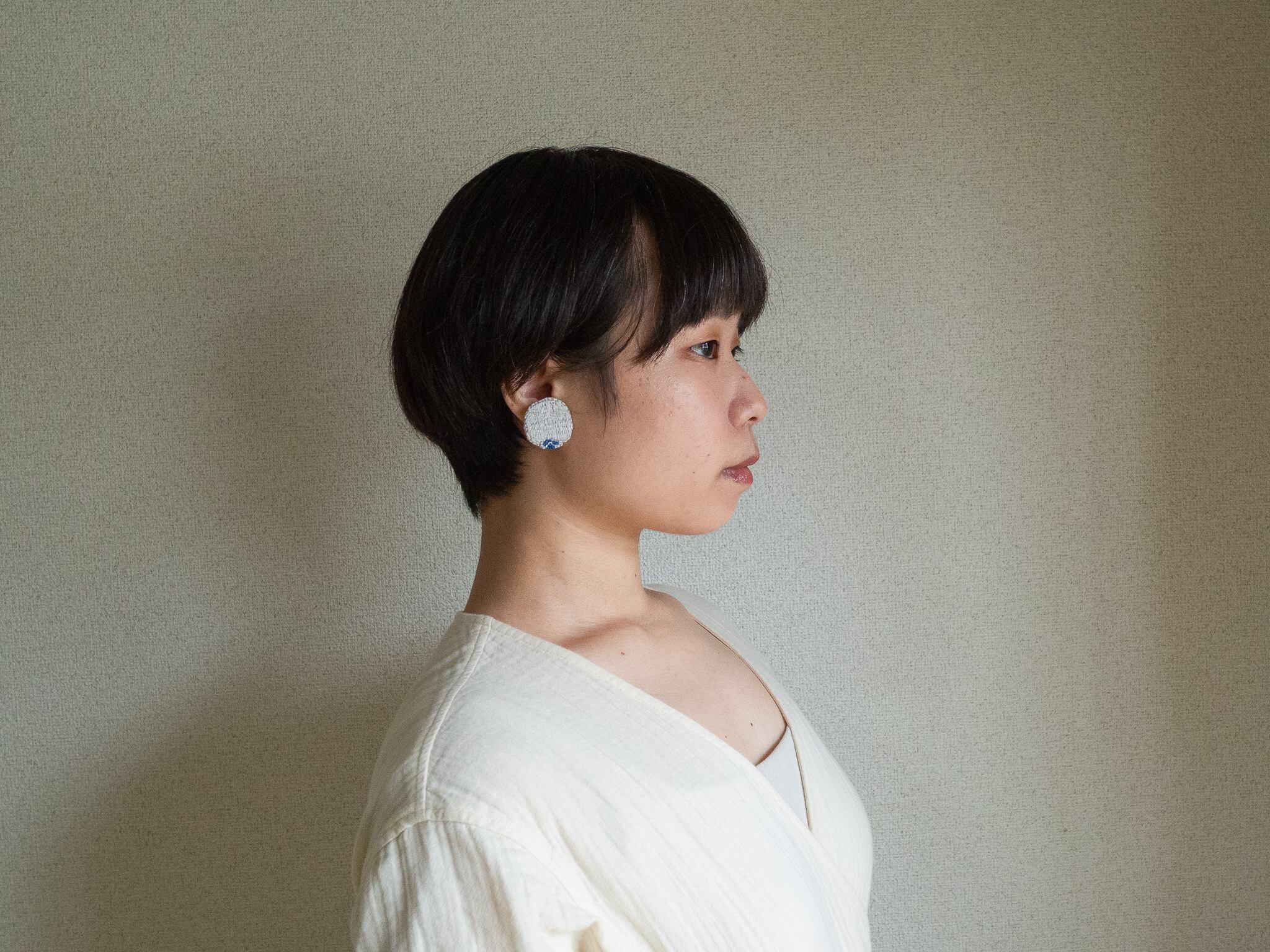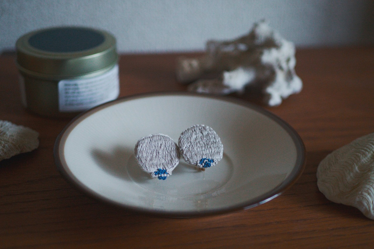 星の光に照らされて輝く月桃の花をイメージした、銀色の糸の輝きが美しい刺繍イヤリングです。